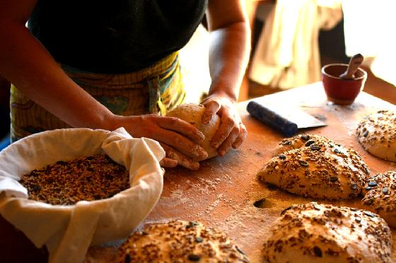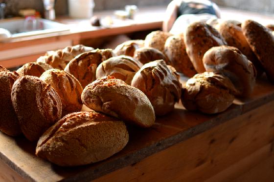 Je fais du pain au levain, avec des farines de blé, de seigle et de grand épeautre bio, issues de céréales produites à Darazac. Le pain est cuit au four à bois.